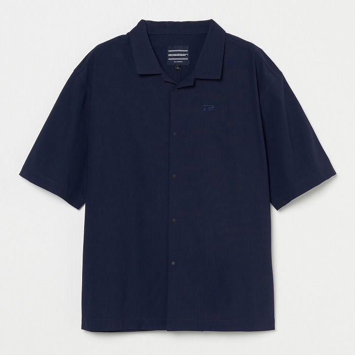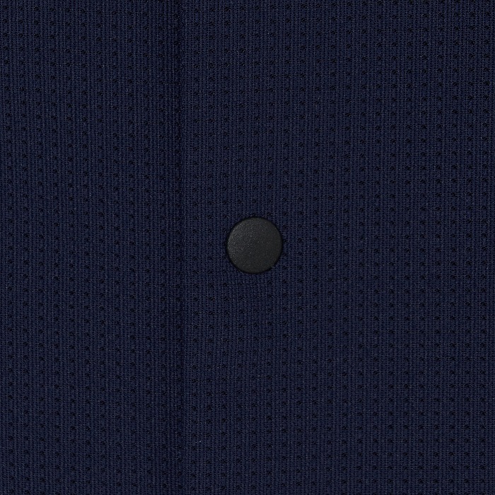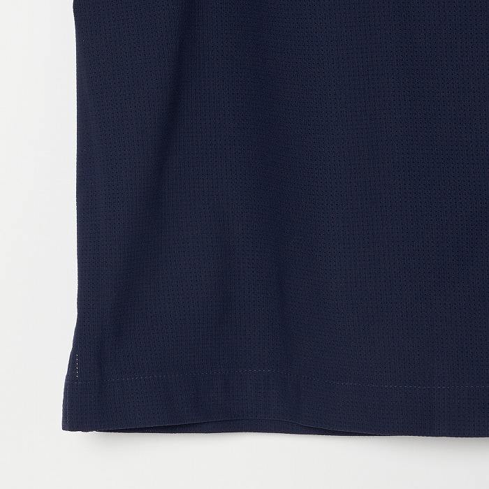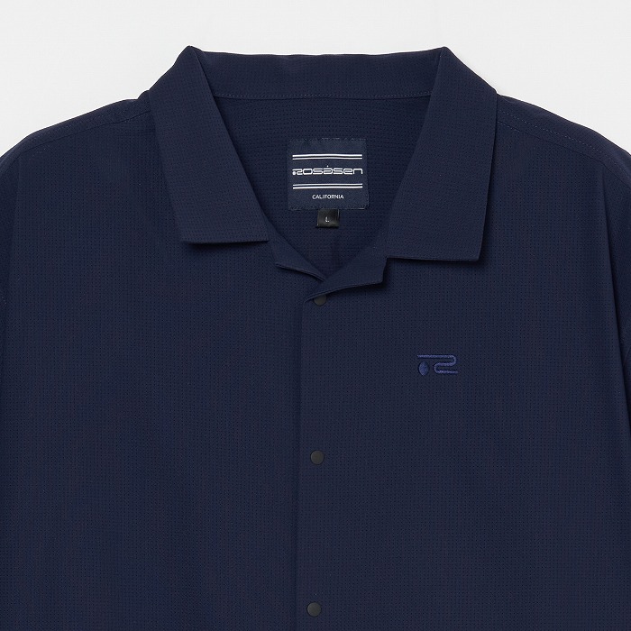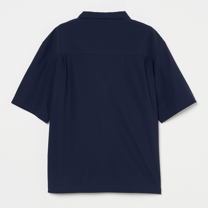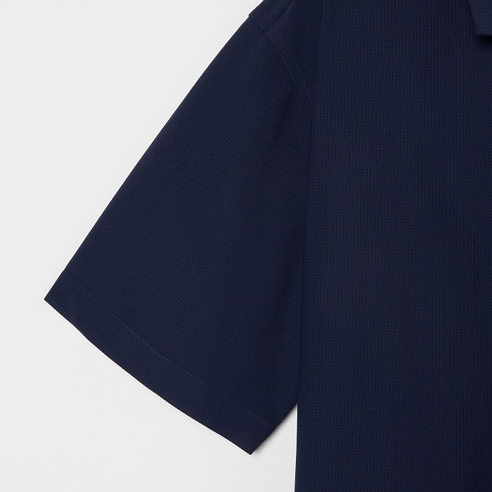 軽量でストレッチ性の高いクールドットメッシュ素材を使用。麻調の糸を使用することで清涼感のある見た目に仕上がっています。イージーケアで通気、吸水速乾性に優れています。釦は同色のドット釦を使用しスポーティでタウンカジュアルな雰囲気のアイテムです。
