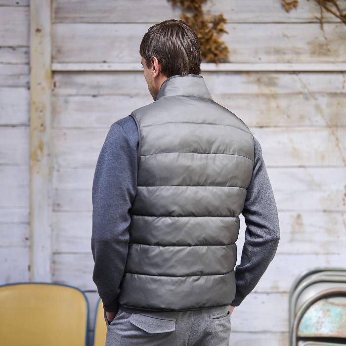 世界トップクラスの高性能加熱繊維「THERMALOFT HEATR」を使用した、革新的な中綿ベスト。太陽光などの光エネルギーを効率的に吸収し、熱に変換することで、抜群の保温性を発揮します。表地には、最軽量クラスの7Dリップ素材を採用。軽やかな着心地と、ふっくらとした中綿のボリューム感が魅力です。胸元の切り替えには、同素材のフラノパンツとセットアップで着用できる、デザイン性と機能性を兼ね備えた、大人のための一着です。