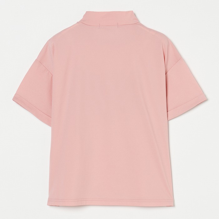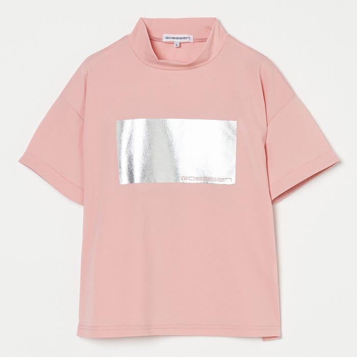 箔プリントを胸元に施したモックネックTシャツは、サラッとした着心地と、UV機能を兼ね備えています。シンプルながら存在感があり、コーディネートしやすいアイテムとして幅広いシーンで活躍します。048-73441のスカートと箔プリントカラーをリンクしているので、セットアップ風に着ていただけます。