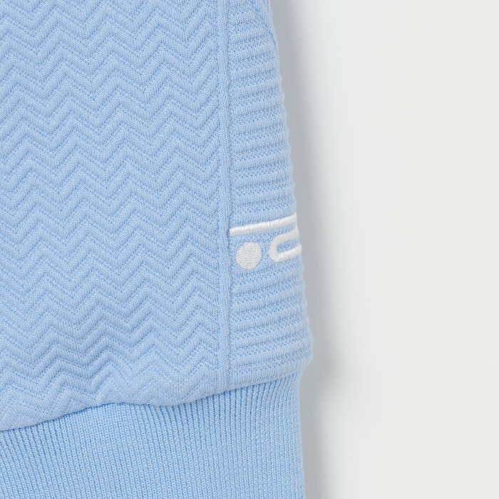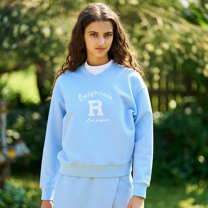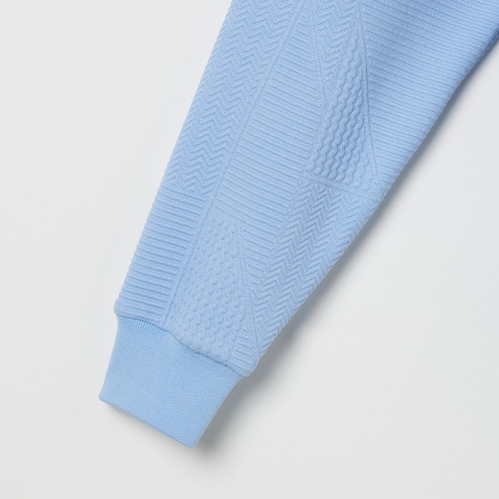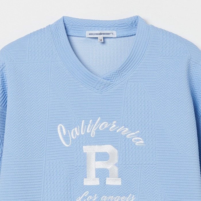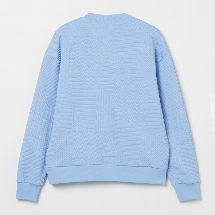 パッチワーク柄を表現した膨れジャガード素材を使用した、存在感のあるプルオーバー。表面感のある素材が、個性的でおしゃれな印象を与えます。珍しいVネックデザインが、女性らしさを引き立てます。胸元のロゴ刺繍もポイント。同素材のスカートと合わせたセットアップスタイルもおすすめです。