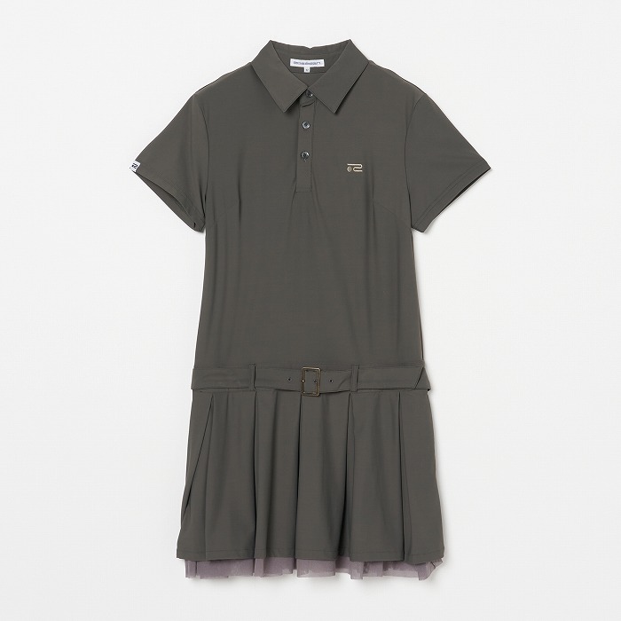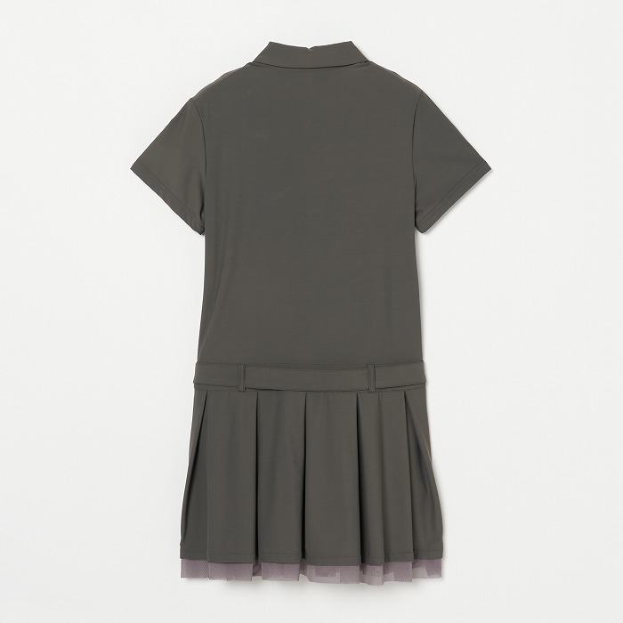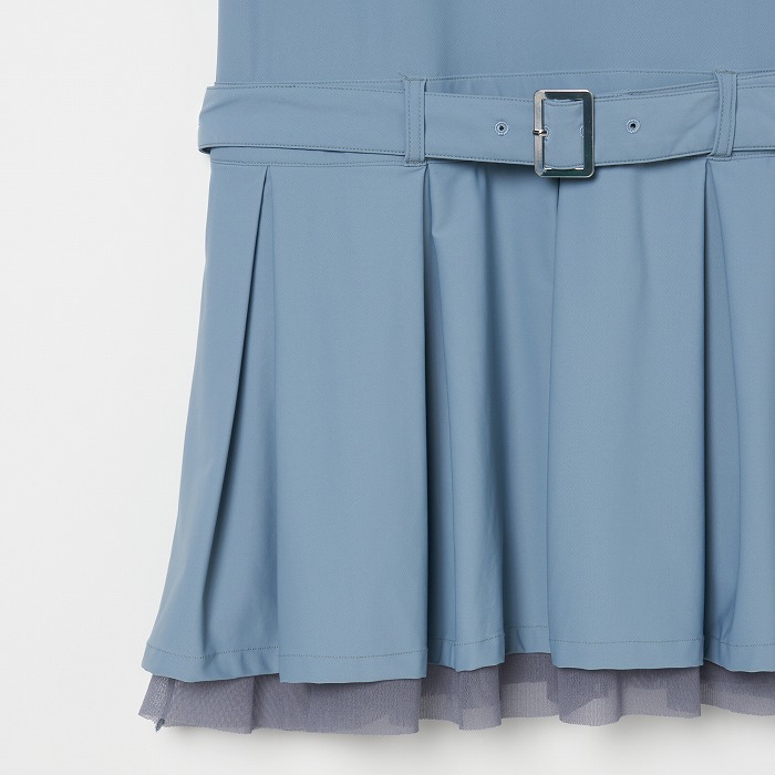 ナイロン素材の冷たさを感じられるアイテムです。ウエストをローウエストに設定し、共地のベルトをポイントとしてデザインしました。ベルトの絞り加減によって、ウエストの位置調整が可能です。スカート部分の裏側にチュールを配置し、奥行きを演出。洗練されたスタイリッシュな印象を与える仕上がりとなっています。