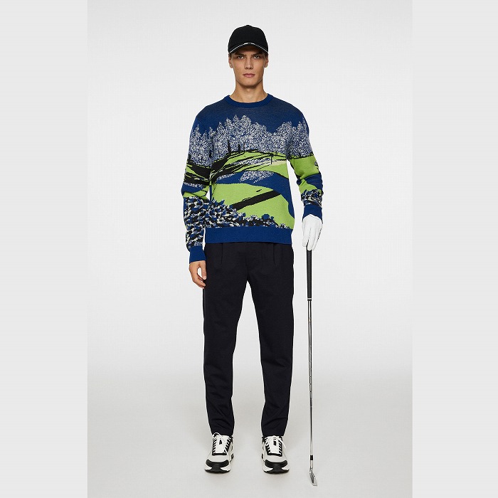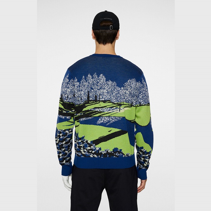 オーガスタゴルフコースをイメージした5トーンのシーズンモチーフが特徴のクルーネックセーターです。メリノウールを使用したジャカード編みで、リブの襟、カフス、裾がスタイリッシュな印象を与えます。消臭コントロール、湿気管理、体温調整機能を備え、快適な着心地を実現。柔らかな素材感で、ゴルフやカジュアルシーンにぴったりの一着です。