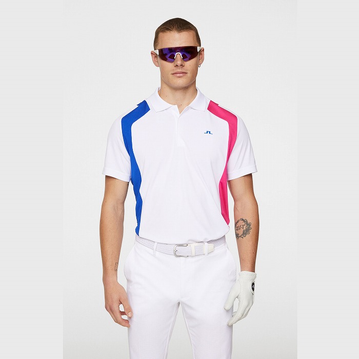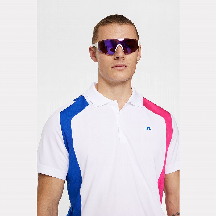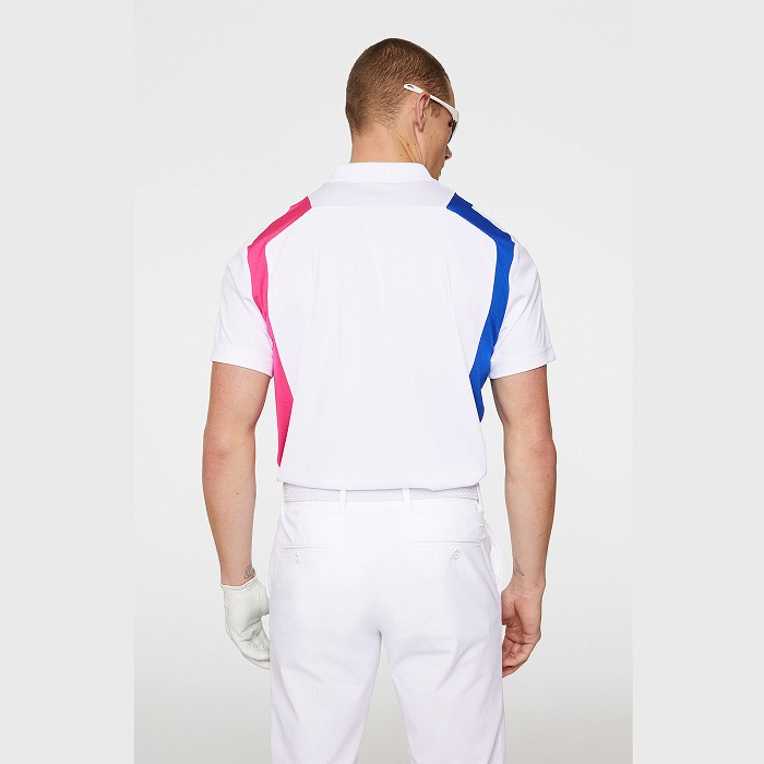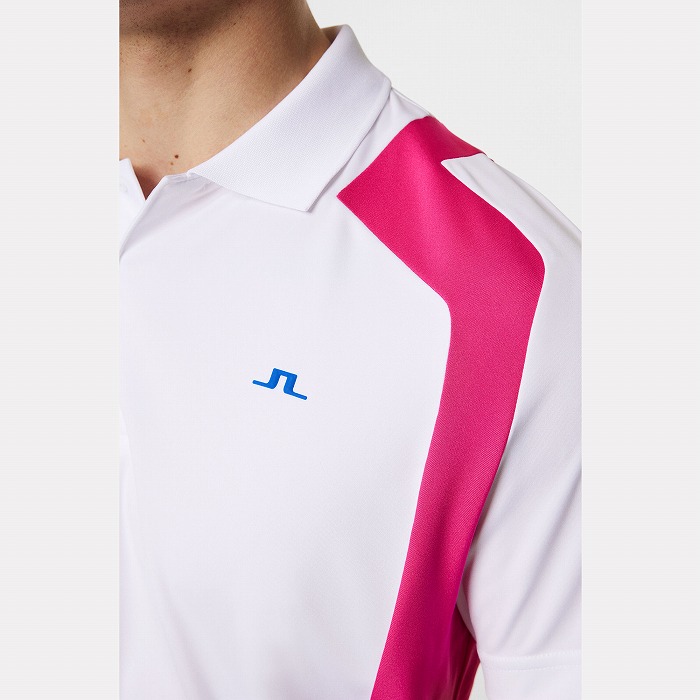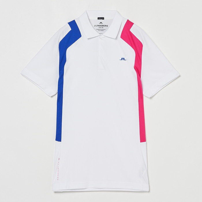 両肩にあるブリッジマークのカラーパネルブロックが特徴の新しい半袖ポロシャツです。ニット襟、前立ては隠しボタンタイプ。左胸にブリッジマークロゴ、右裾にJリンドバーグロゴのシリコンプリントがあります。速乾性・4wayストレッチの素材特性があり、生地はエコテックス認定済となります。