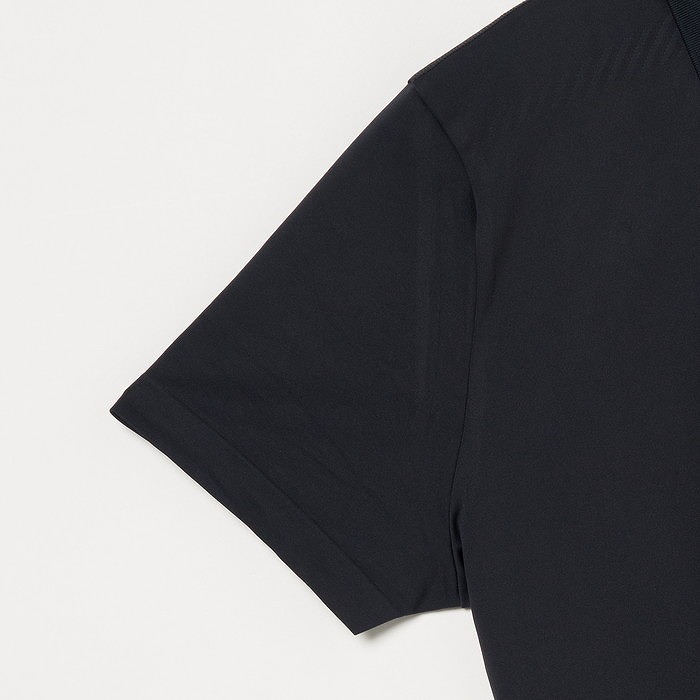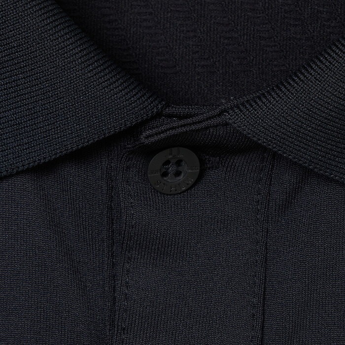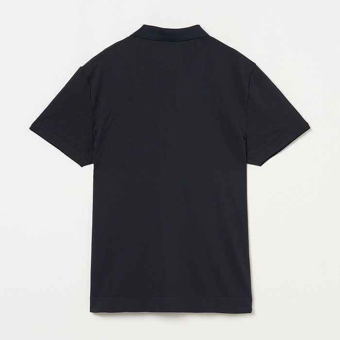 縫い目のないシームレススタイルで背面に大きなブリッジマークが挿入された半袖ポロシャツです。前立て2つボタンタイプ。左胸にブリッジマークがあります。冷感・速乾性の素材特性があります。