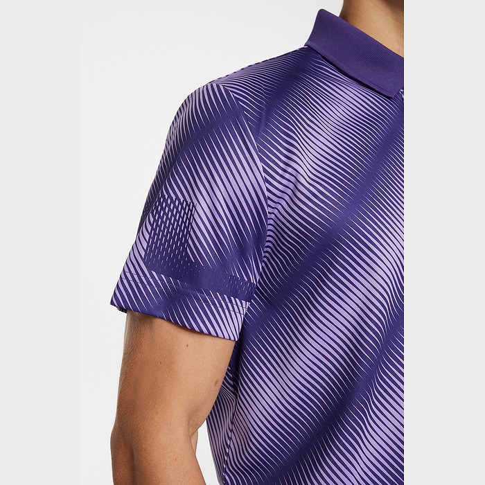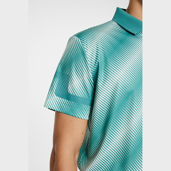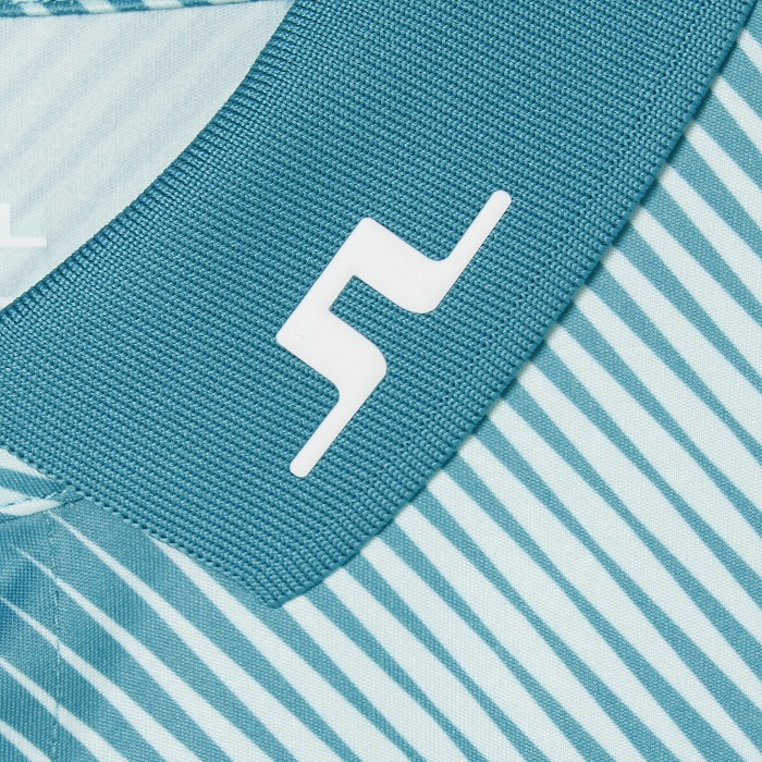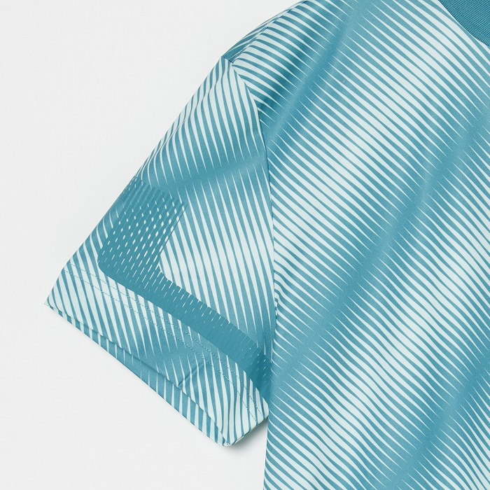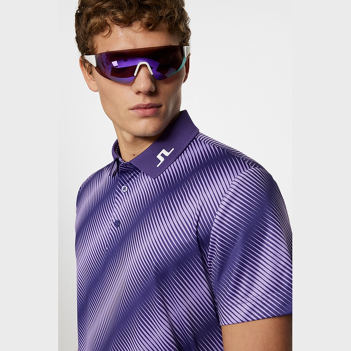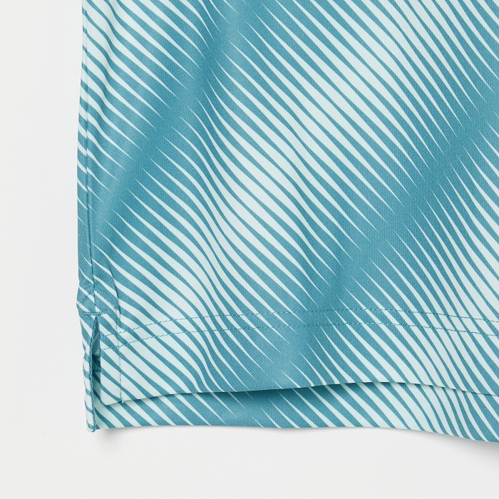 右袖に大きなブリッジマーク(ストライプ柄)がポイントの半袖ポロシャツ。全面には今シーズンの柄がプリントされています。シルエットはレギュラーフィットで、前立ては3ボタンタイプ。台襟付きのリブ襟タイプ。左襟の先端と後ろ衿下にブリッジマークがあります。速乾性、4WAYストレッチの素材特性もあり、生地はエコテックス認定済となります。