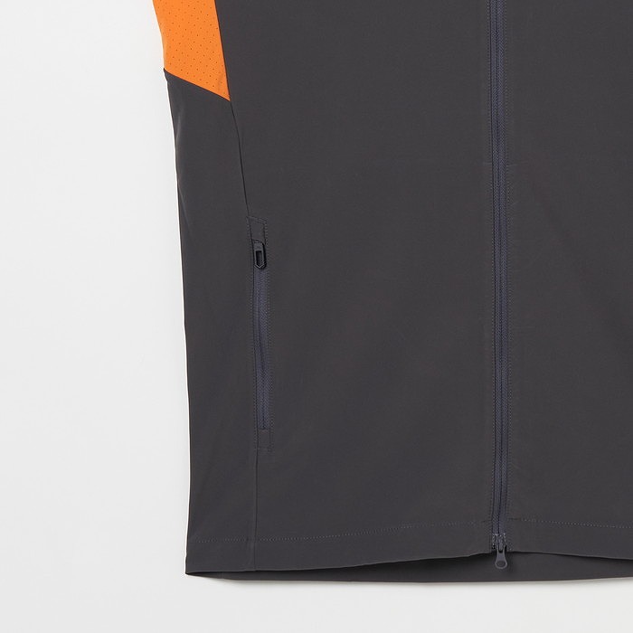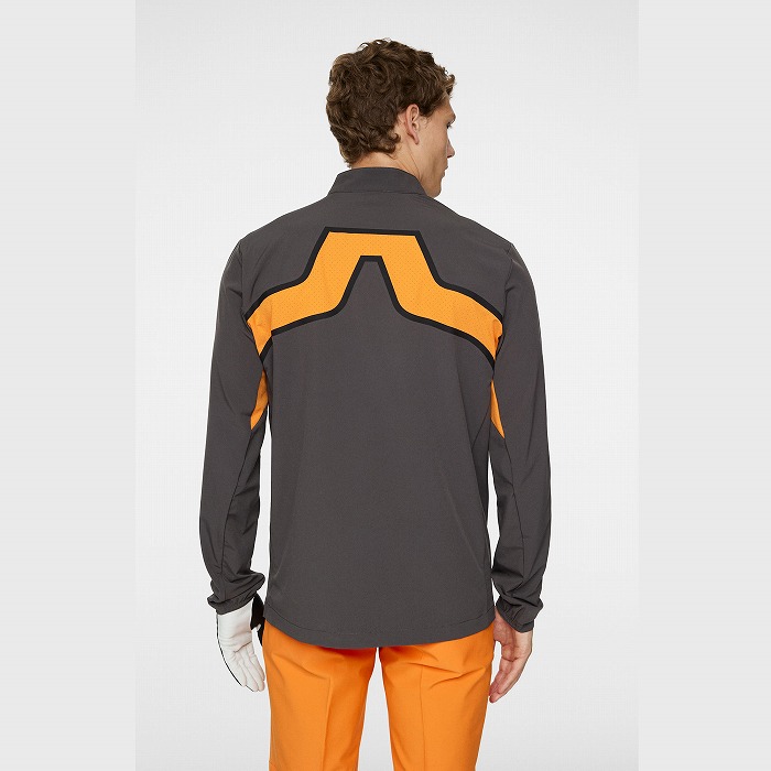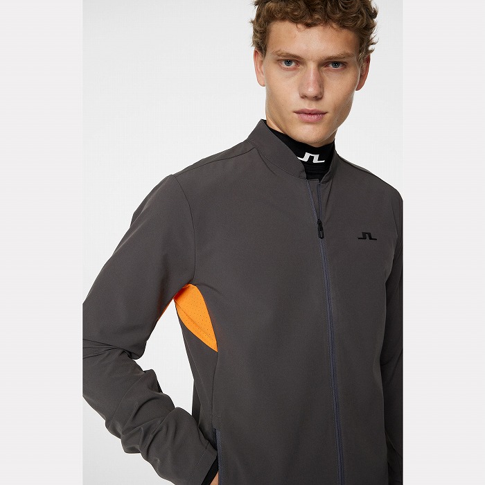 新しくアップデートされたJ.LINDEBERGの特徴的なKVジャケット。背面のブリッジマークのパネルはレーザーカットで穴を開け、通気性を備えています。左胸にシリコンブリッジロゴが付き、フロントは2WAYジッパーの前開き仕様。4wayストレッチ・撥水・軽量の素材特性があります。