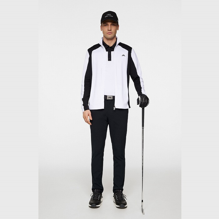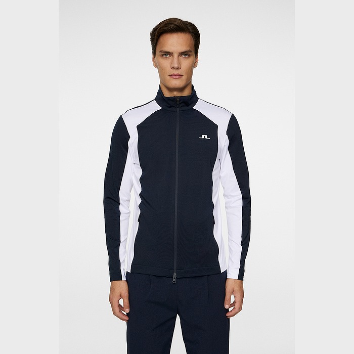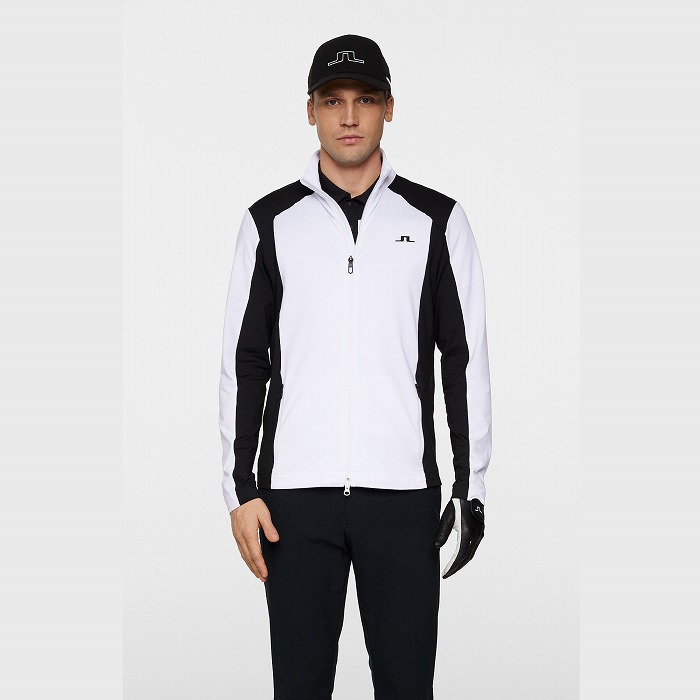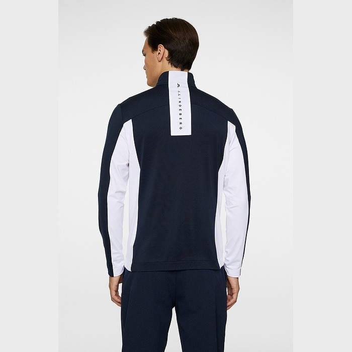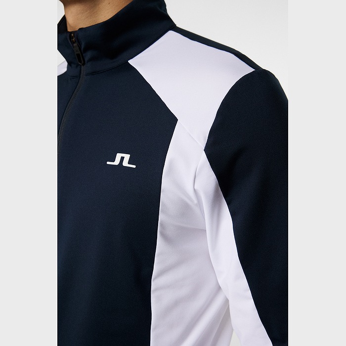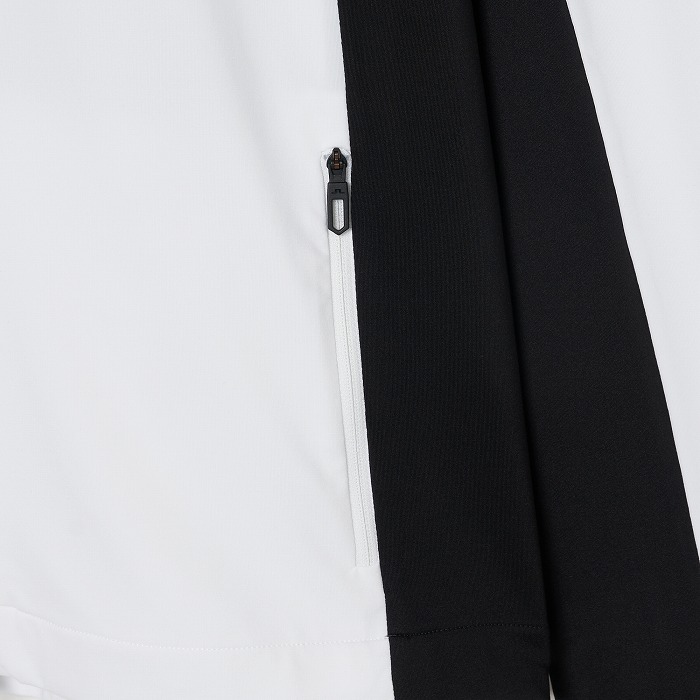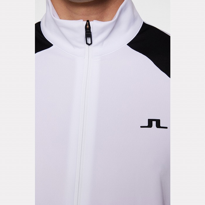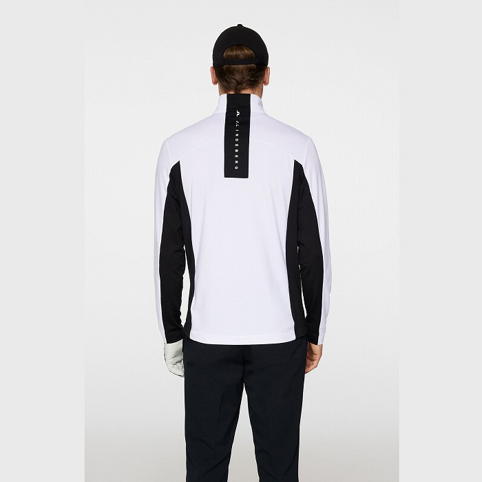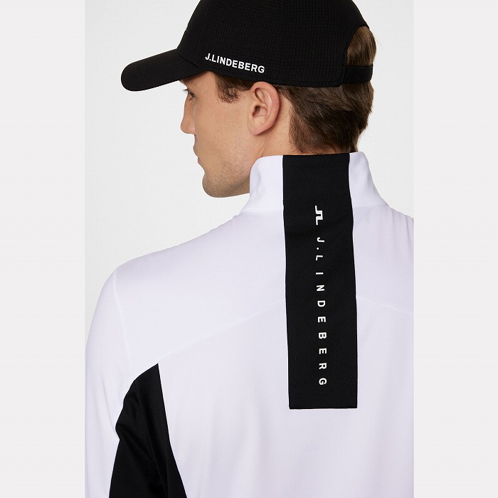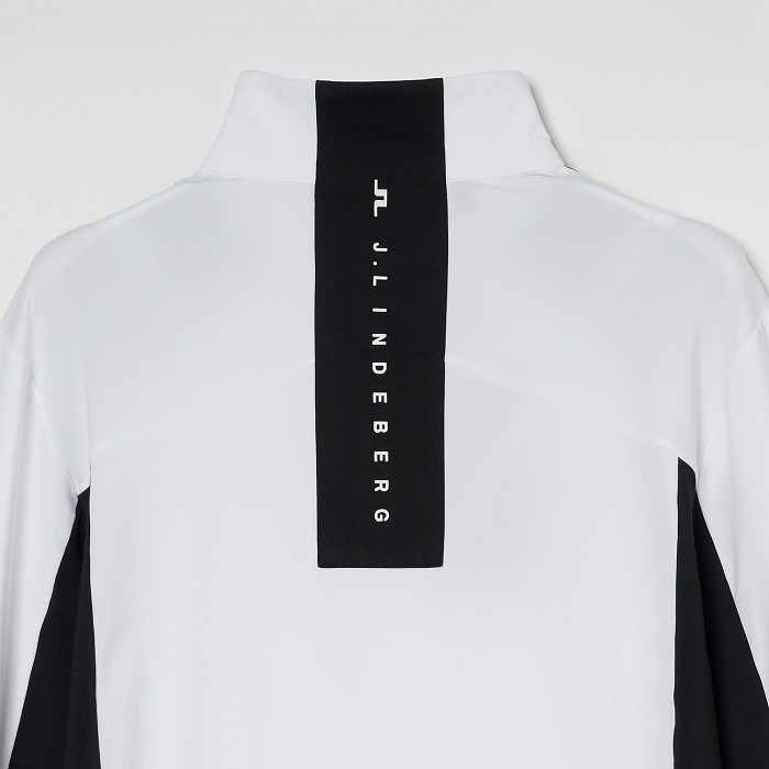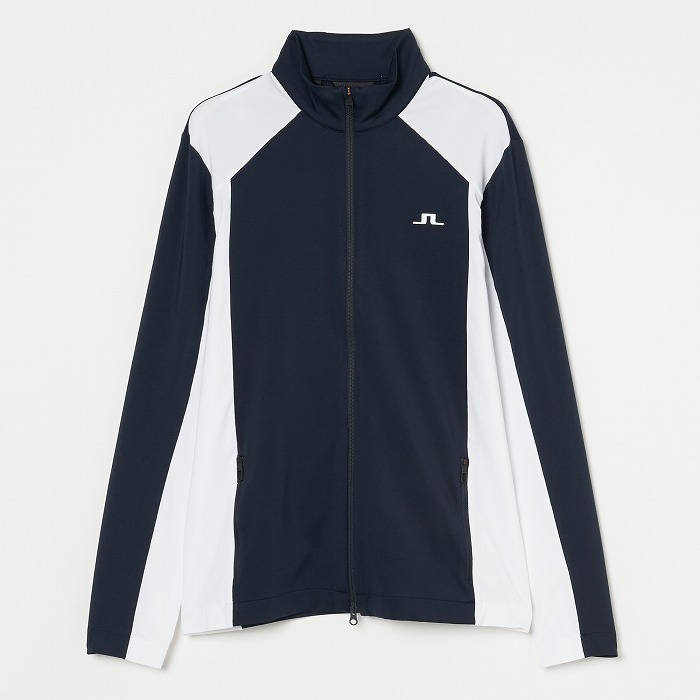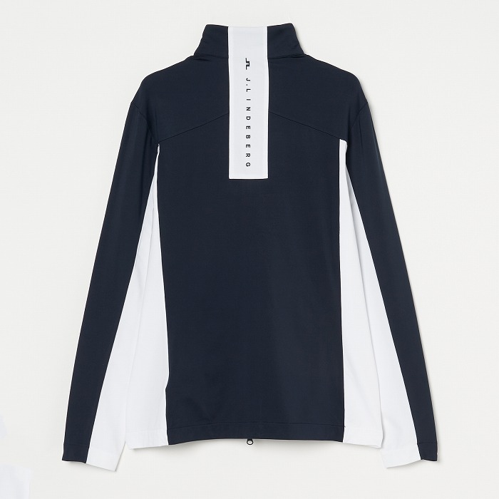 カラーブロックのパネル、バックには縦にJ.LINDEBERGのロゴを配置したミッドレイヤ-です。生地は快適さと暖かさのために内側を起毛しています。フロントはロゴ引き手付きダブルジッパー、両サイドポケットはジッパー付きです。左胸にはブリッジロゴのシリコンプリント。速乾性、4WAYストレッチ、軽量の機能特性があります。