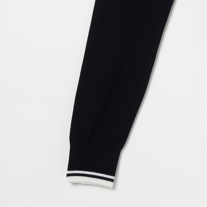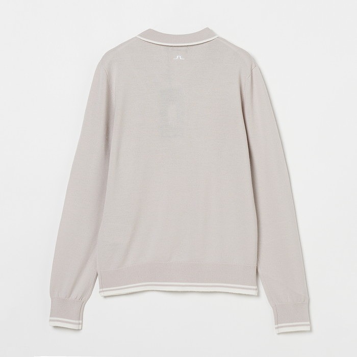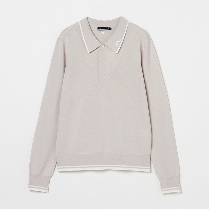 柔らかいカシミヤウール混のニットシャツ。クラシックな3ボタンの前立てと裾・袖口・衿端はコントラストカラーのラインが入ったデザイン。前左衿と後ろ衿下にブリッジマークがあります。通気性、臭気を抑制してくれる機能特性があります。