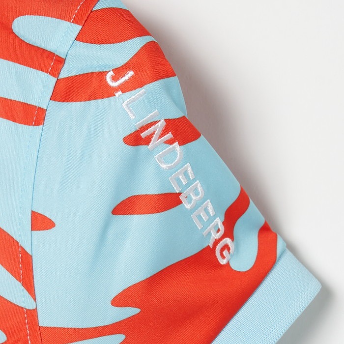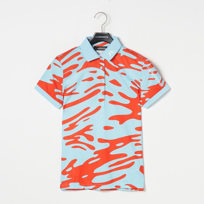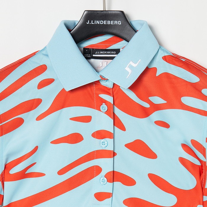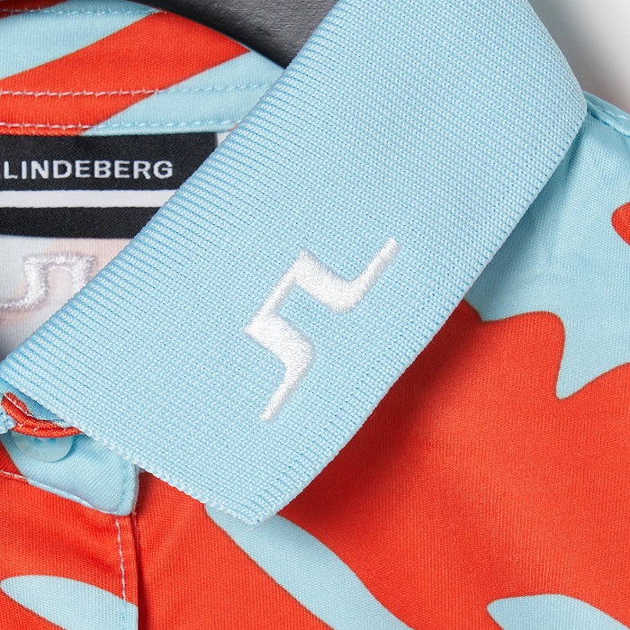 シーズンプリントが施されたリンドバーグのベストセラーのツアーテック半袖ポロです。 襟はリブで、前立ては4つボタンタイプとなります。袖にはロゴ刺繍、襟とセンターバッグにはブリッジ刺繍があります。素材特性としては4WAYストレッチで速乾性があり、生地はエコテックス認証済みとなります。