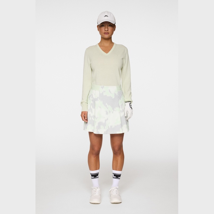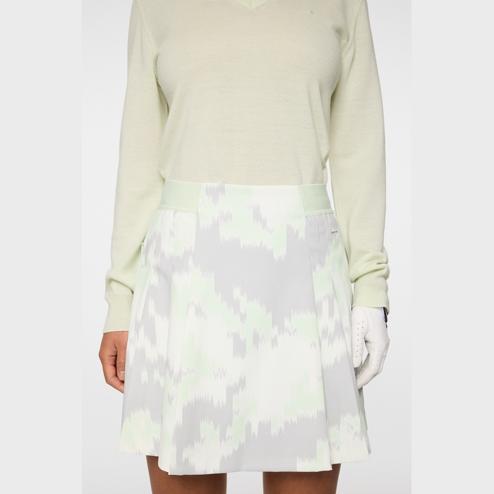 人気のマイクロハイストレッチで作られたシーズンプリントのプリーツスカート。たっぷりとしたナイフプリーツが動きやすさとフレア感を演出します。ウエストは伸縮性のあるゴムバンドで快適なフィット感を実現。付属のインナーショーツ付き。速乾性、4WAYストレッチ、撥水の素材特性があります。撥水加工は環境に配慮したPFCフリー加工で、ブルーサイン、GRS(Global Recycled Standard)、エコテックス認証済みとなります。素