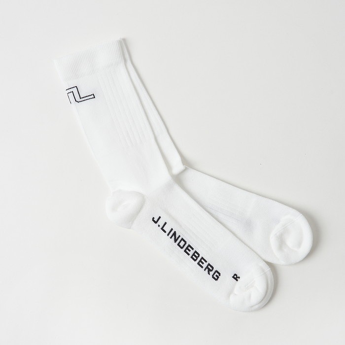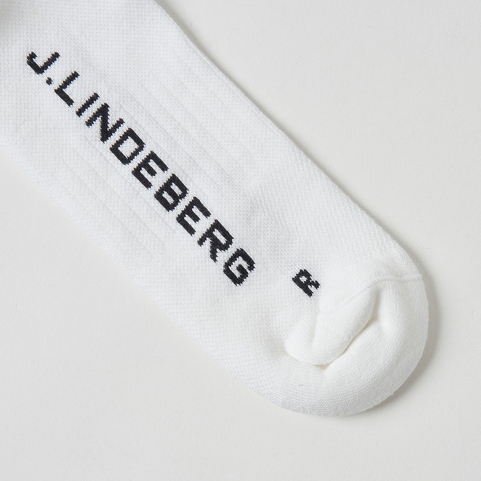 コントラストカラーのジャガードでブリッジマークをデザインしたレギュラー丈のソックスです。足の甲をメッシュニットした快適で速乾性のある仕様となっています。サイドにJ.LINDEBERGのジャガードロゴがあります。