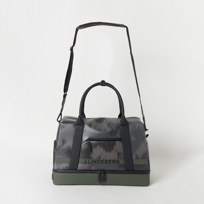今シーズンのグラフィックがプリントされた耐久性、耐摩耗性、耐熱性に優れた合成皮革を使用したボストンバックです。バッグには防水ジッパーが付いているので、簡単に開いてゴルフシューズを入れることができます。容量:約49L。