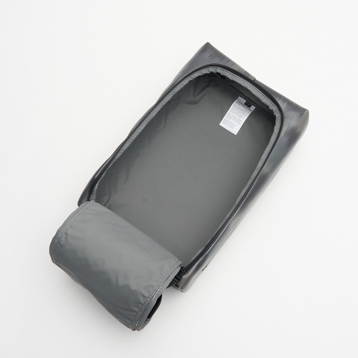 シーズンプリントのシューズバッグは、スタイリッシュで機能的なアイテムです。防水ジッパーと通気口を備え、湿気や臭いを防ぎます。取り外し可能なストラップで持ち運びも便利。J.Lindebergのブランドロゴが施されており、デザイン性も抜群。ポケットが1つあり、小物の収納にも最適です。シューズをしっかり守りながら、オシャレに持ち運べるバッグです。