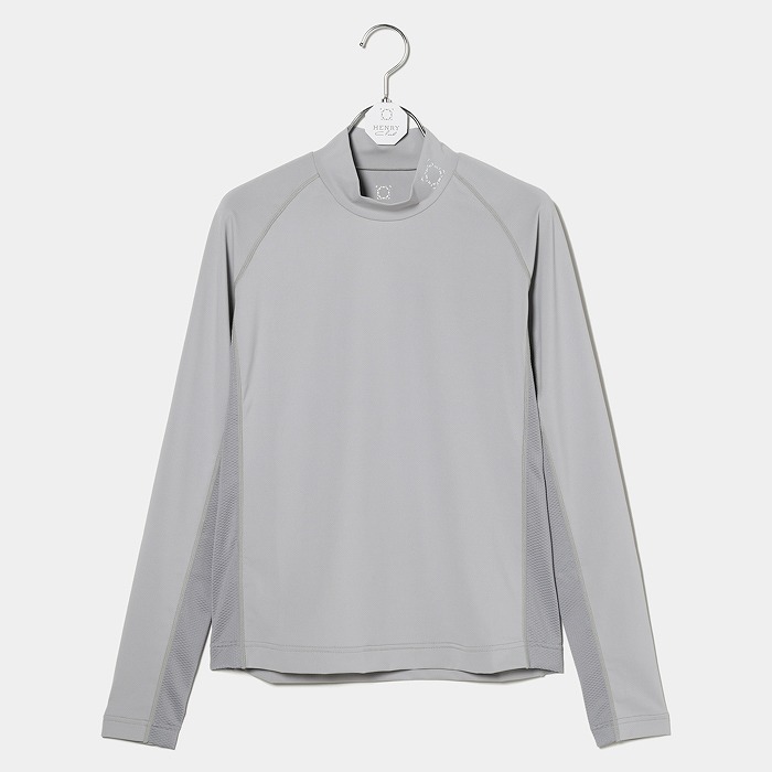 吸水速乾、4WAYSTRETCH、紫外線防止機能を持ち、着心地が良くパウダータッチの肌触りもいい快適素材ベア天。環境に配慮したリサイクルポリエステルを使用したECO素材。上品なメッシュ素材をポイントで使用しスポーティすぎないバランス感のシンプルなベースレイヤー。どんなアイテムにもコーデイネートしやすい万能デザイン。