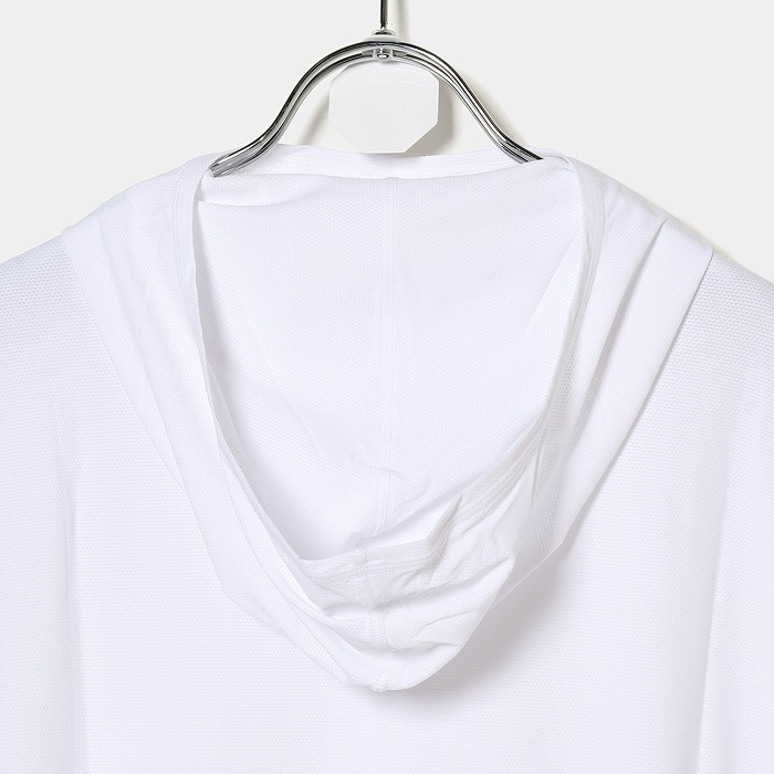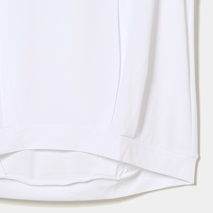 吸水速乾、耐摩擦、抗ピリング、接触冷感、UVカット機能がありながらもハニカム組織の素材の表面感が特徴的な素材を使用。着丈が長く、立体的な裾絞まりのシルエットはウエスト周り、ヒップ周りを綺麗に見せてくれます。少し長めの袖丈も腕周りを綺麗に見せてくれて計算されたパターンのトップスです。セットアップで同じ素材のパンツと合わせるのもおすすめです。