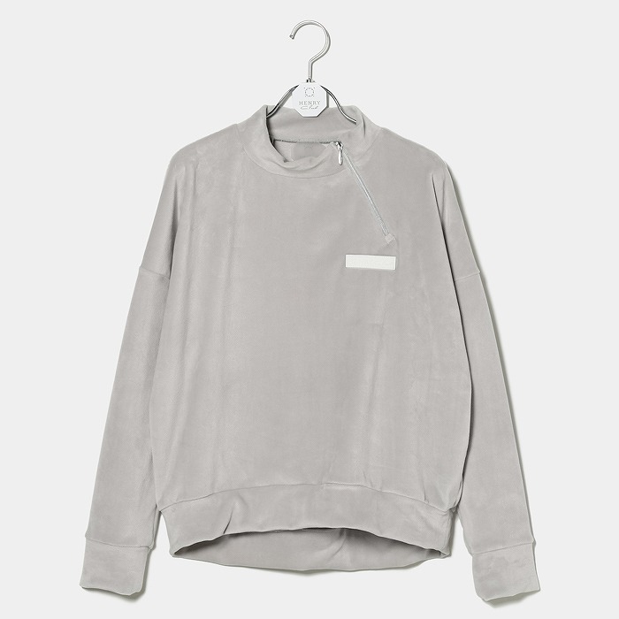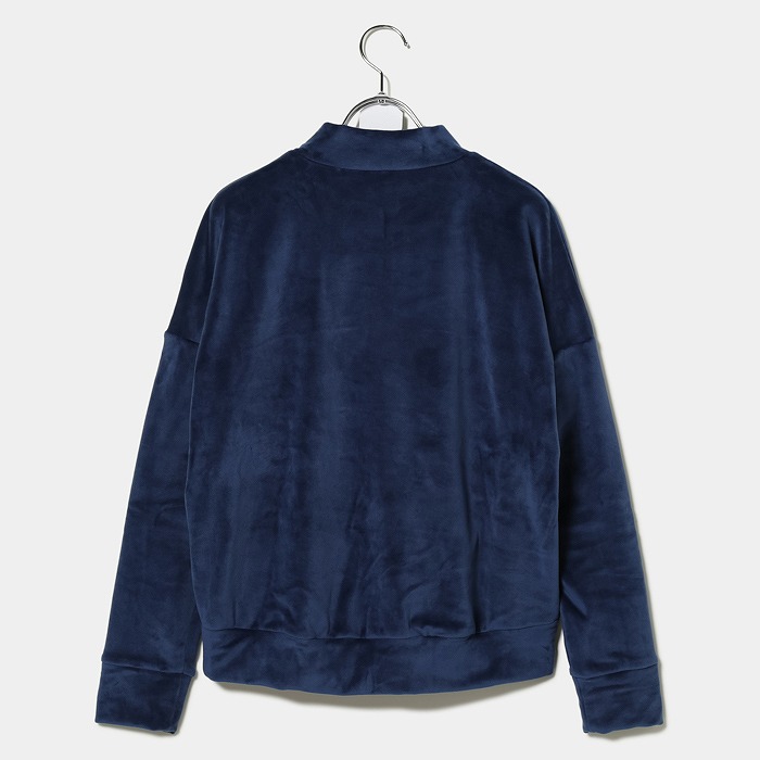 究極の肌触りとウォーム感のベロア素材を使用した保温性のあるトップス。アクティブな動きに対応する4WAYストレッチ性、毛足の長さによる微光沢が上品な素材。フロントの斜めファスナーもポイントでインナーを覗かせてレイヤードを楽しんでいただけます。後身頃は少し長めの作りになっていて腰回りも温かく、フォルムが綺麗なのも特徴です。シンプルなデザインなのでどんなボトムスとも相性がよく冬のゴルフシーンや、デイリーウェアに最適です。