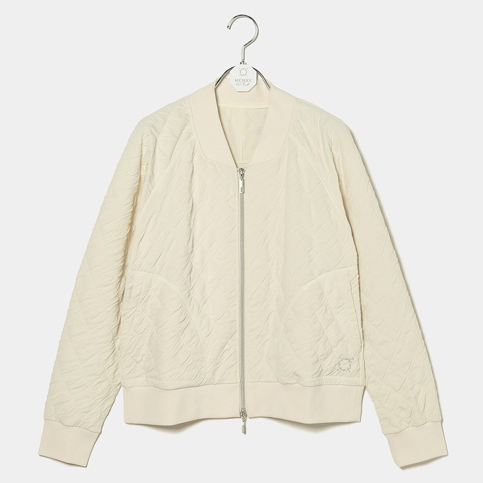 4WAYストレッチのキルトジャガード素材を使用。今シーズンのヘンリークラブを象徴する素材でシボ感があり、フラットになりがちなウェアのコーディネートにプラスすることで華やぐアイテム。衿のカットが抜け感のあるMA-1タイプのデザイン。つかず離れずのすっきりしたシルエットと、軽量で動きやすいアイテムです。春夏シーズンだけでなくシーズンレスで着ていただけるブルゾンです。