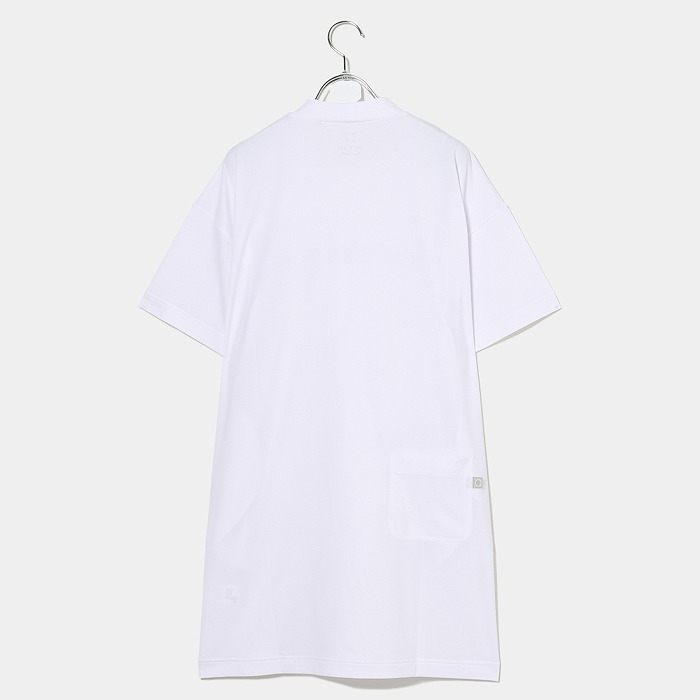 吸水速乾、耐摩擦、抗ピリング、接触冷感、UVカット機能がありながらもハニカム組織の素材の表面感が特徴的な素材を使用。着心地が良く扱いやすく、オーバーシルエットのポケット付きワンピースはイージーに着ていただけるアイテム。適度に主張するグラデーションプリントがポイント。