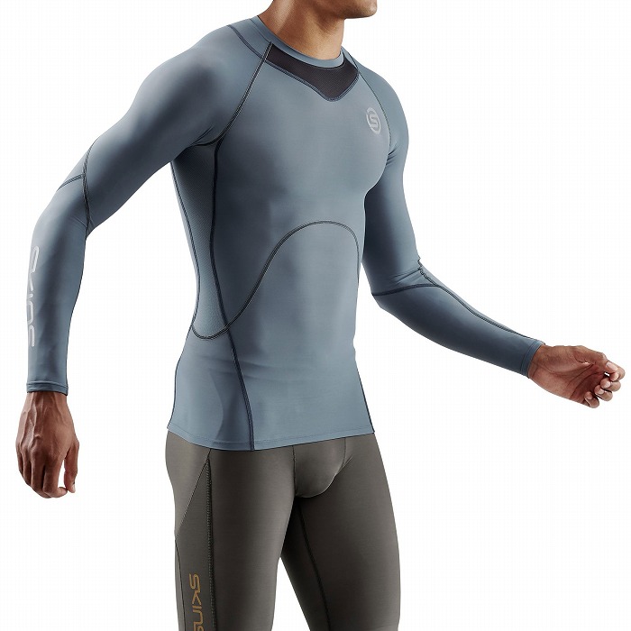 SKINSの象徴的なアイテムA400シリーズの後継モデル。パフォーマンスの向上と素早いリカバリー機能を高水準で兼備しています。腕への集中的な動的段階着圧により、筋肉の振動を抑え、身体の正確なポジショニングへの意識を高めることが可能です。前後左右に配置されたメッシュパネルにより高い通気性と透湿性を維持できます。