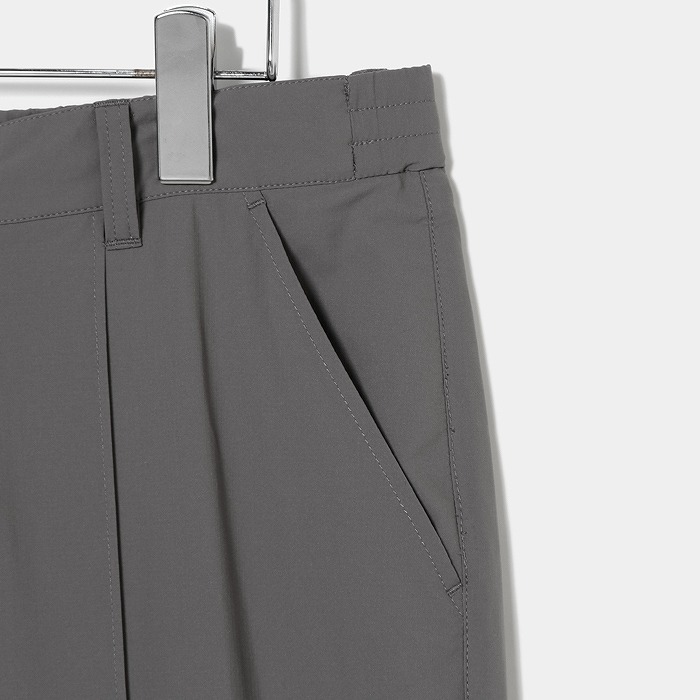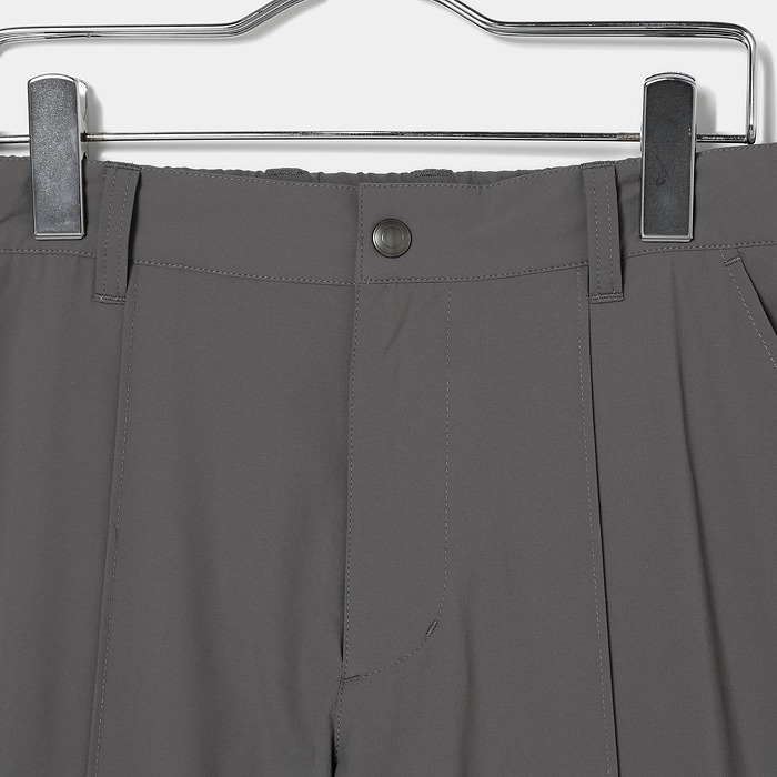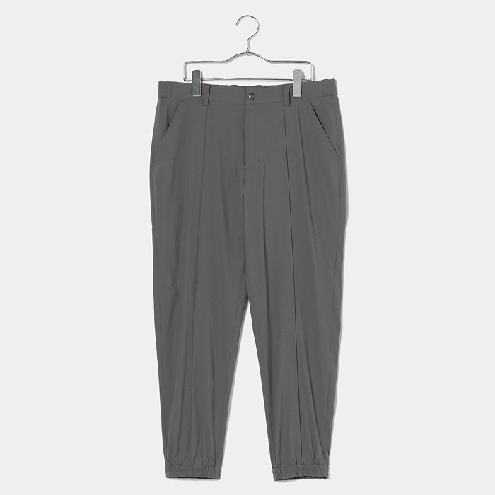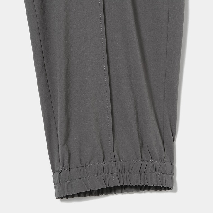 撥水、ストレッチ機能が付いた裾リブ付きジョガーパンツ。ポケット内側の生地にメッシュ素材を使用し通気性にも配慮しています。前部分にはピンタックでクリーズ線をだす事でキレイ目な着こなしを目指しています。左後ポケットには配色閂止めやモチーフ配色で、他のウエアと組み合わせしやすいデザインになっています。