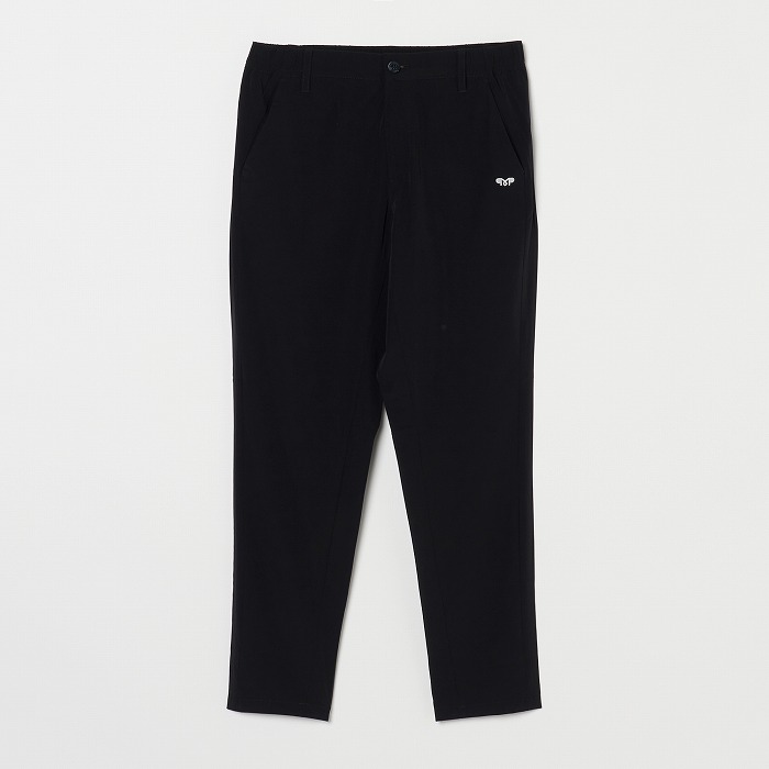 UVカット、吸水速乾、4WAYストレッチが素材特性のメンズパンツ。裾幅17cm。ウエスト後ろ側はロゴ入りゴム素材となっており、すっきりとしたデザインを引き立てます。ウエスト後ろ内側にはすべり止めがついています。ウエストの開閉はダブルボタンとファスナーになり、さわやかで着心地がよく、スリムなフィット感がデザインを引き立てます。素材はナイロン/ポリウレタンとなります。